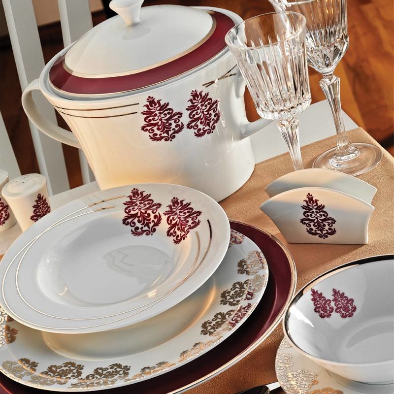 Porselen suplalarıyla tam takım olan yemek takımı ile yemek yemek ayrıcalığını yaşayın
