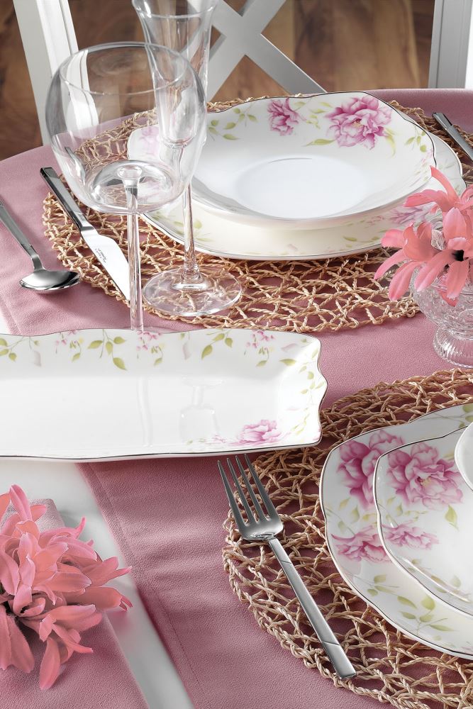 Kütahya Porselen Kare Bone 73 Parça 50112 Desen Yemek Takımı
