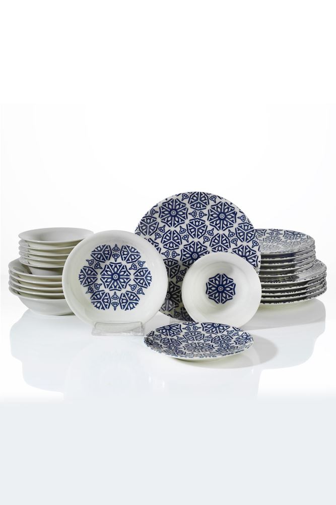 24 Parçadan Oluşan Yemek Seti,6 Adet 25 cm Servis Tabağı,6 Adet 20 cm Çukur Tabak,6 Adet 20 cm Pasta Tabağı,6 Adet 15 cm Kaseden oluşmaktadır.