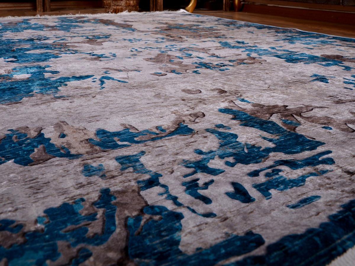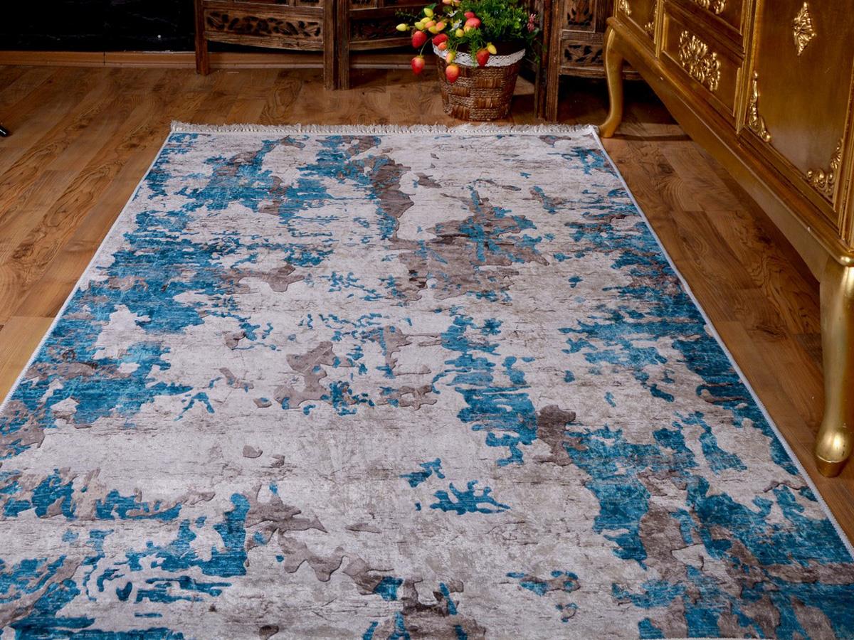 Latex Kaymaz Taban Dijital Baskı Kadife Halı Alaçatı Mavi 180x280 cm