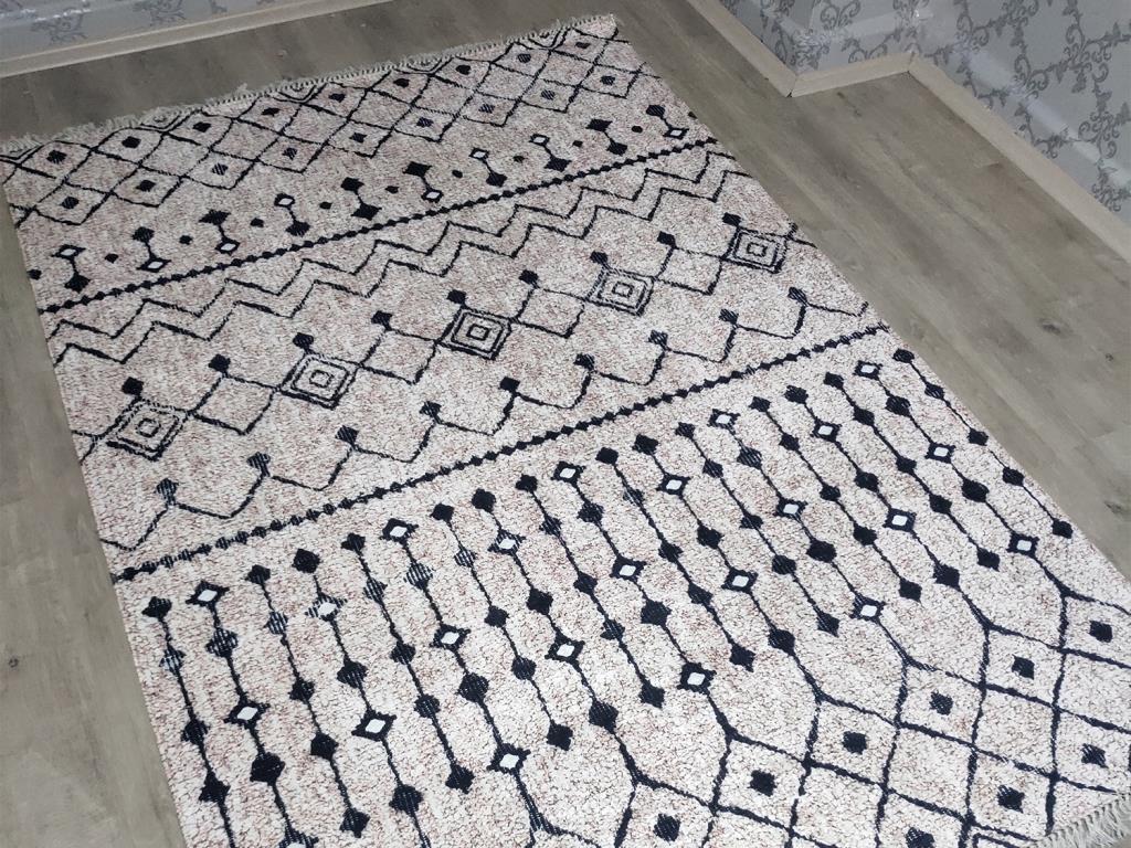 Ürün Adı: "Latex Kaymaz Taban Dijital Baskı Kadife Halı Emma Krem-Siyah 150x220 cm"