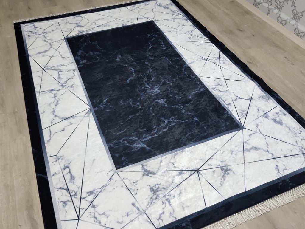 Ürün Adı: "Latex Kaymaz Taban Dijital Baskı Kadife Halı Esta Siyah 150x220 cm"