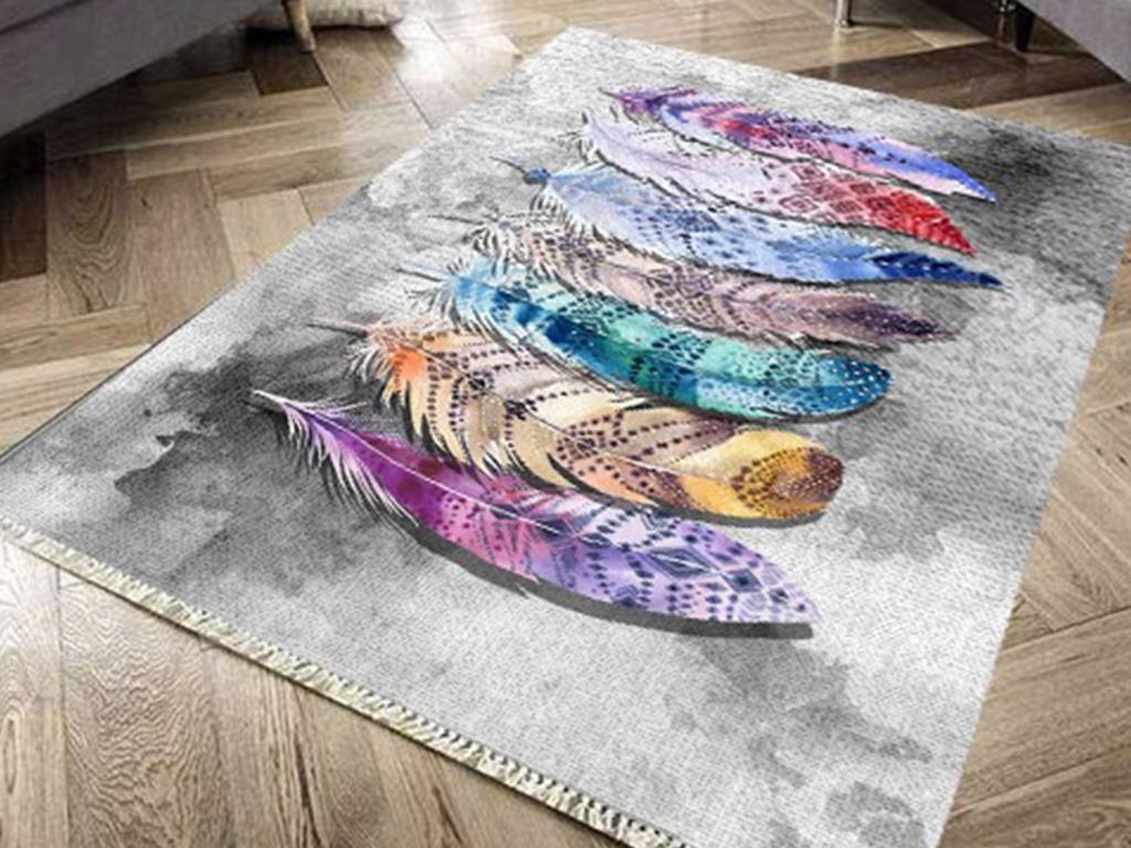Ürün Adı: "Latex Kaymaz Taban Dijital Baskı Kadife Halı Feather Renkli 80x300 cm"