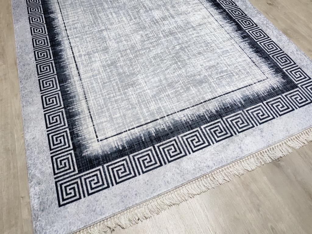 Ürün Adı: "Latex Kaymaz Taban Dijital Baskı Kadife Halı Nora Gri-Siyah 120x170 cm"