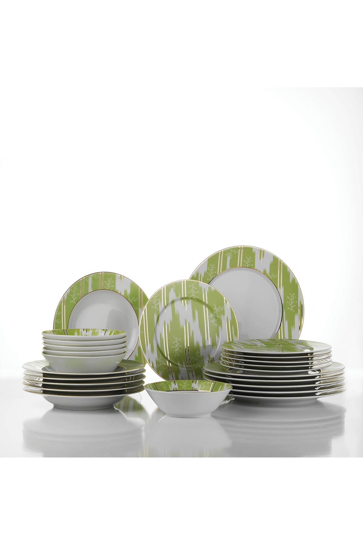 Altın çizgilerin yeşil renk üzerindeki düzeni ve uyumuyla sizlere ferah bir hava sunar. Benzersiz tasarımı ve eşsiz görüntüsüyle sizlere görsel zevk sunan Leonberg 24 Parça Dekorlu Yemek Seti kullanım kolaylığı konusunda da sizlere yardımcı olacak.