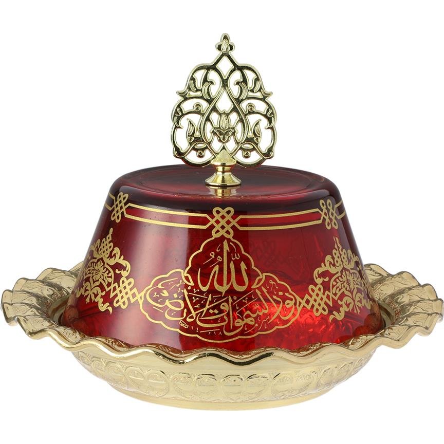 Teslimat: 1x Lina Kuran Desenli Kırmızı Cam Kapaklı Altın Motifli Lokumluk