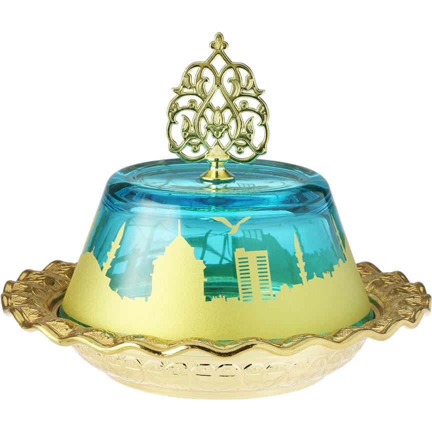 Teslimat: 1x Lina Mavi Cam Kapaklı Altın Motifli Lokumluk