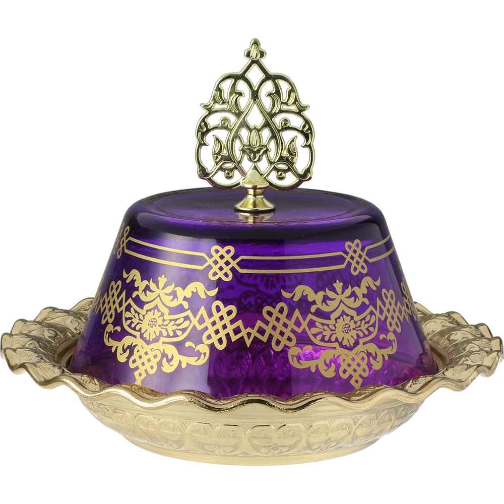 Teslimat: 1x Lina Osmanlı Desenli Mor Cam Kapaklı Altın Motifli Lokumluk