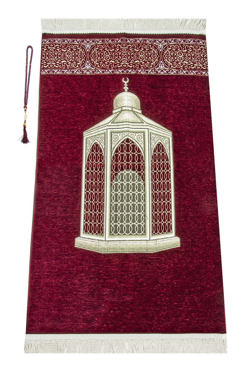 Ürün Adı: "Makamı İbrahim Desenli Lüks Şönil Seccade - Bordo"