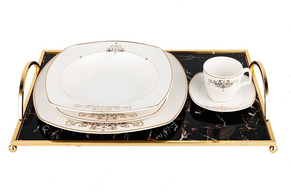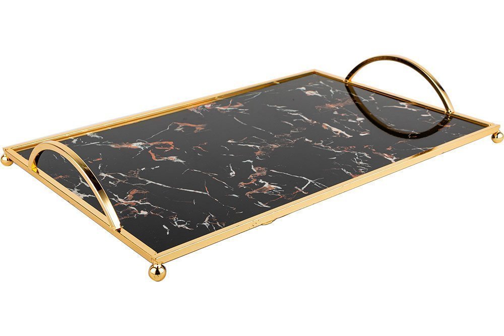 Teslimat: 1 x Marmor Desenli Tepsi | 33.5x25 cm | Siyah | By-ms-g-b