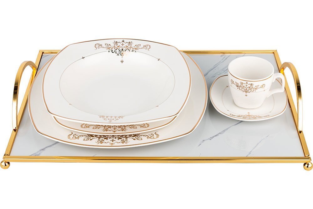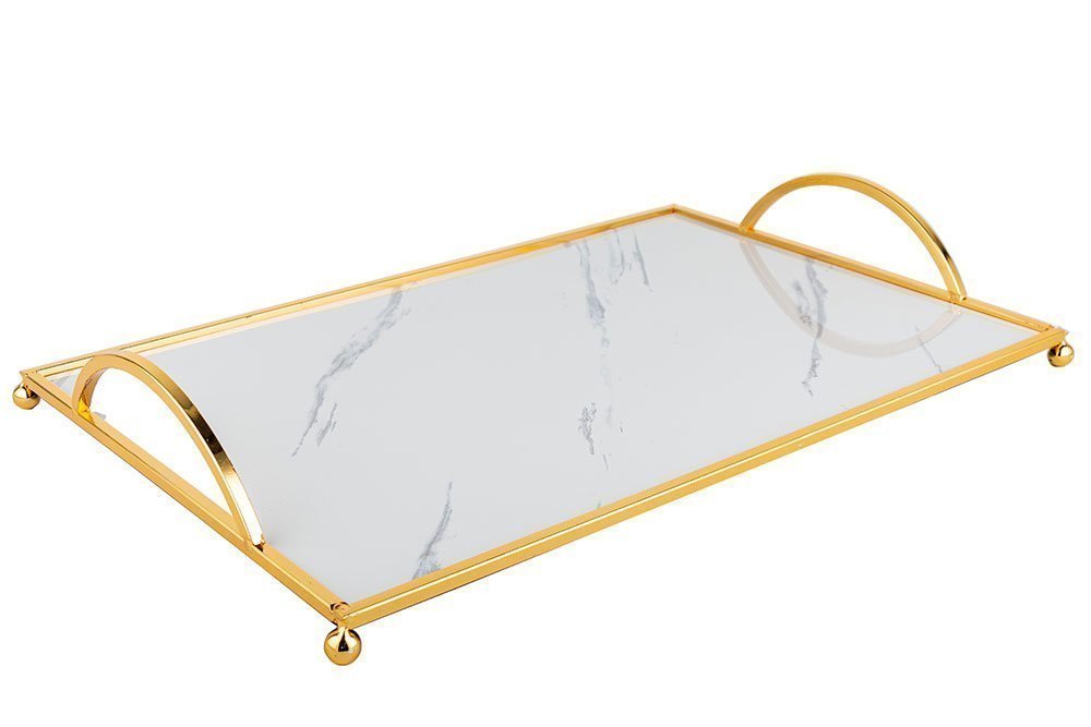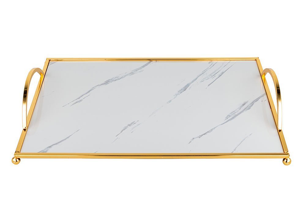 Teslimat: 1 x Marmor Desenli Tepsi | Beyaz | 39x26.5 cm | By-mb-g-w