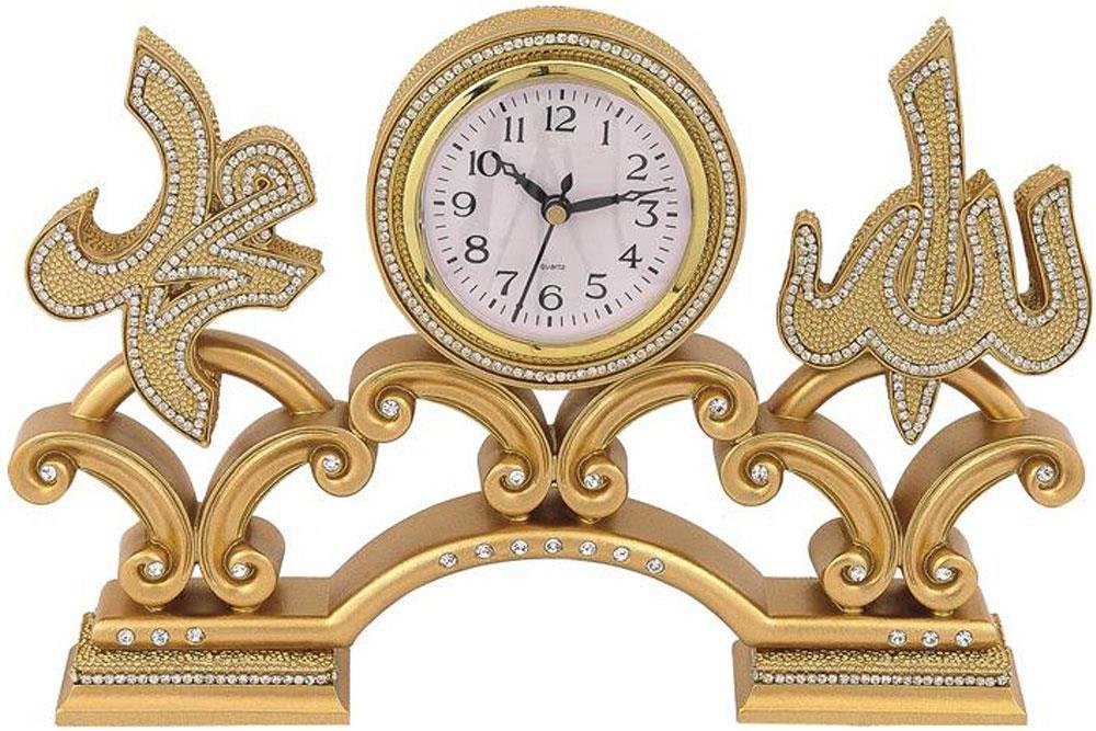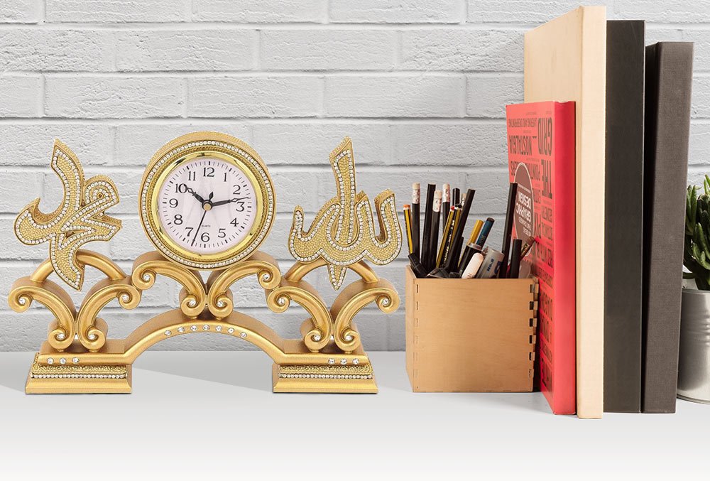 Teslimat: 1x Güneş "Allah & Muhammed" Yazılı Masa Saati - Altın