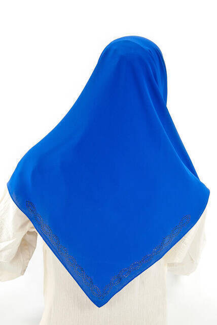 Ürün Adı: "Medine İpeği Taşlı Saks Mavi Başörtü"