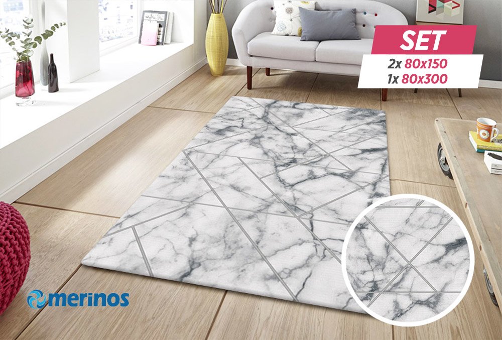 Teslimat: 1x Merinos Craft Modern 3D Halı Seti | 80x150 | 80x300 | Gri
