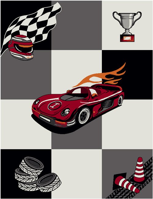 Teslimat: 1x Merinos Diamond Yarış Arabalı Çocuk Odası Halısı | Krem | 21833-695-Cream-Grey