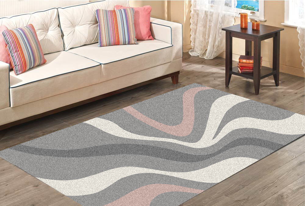Merinos Halı | Diamond SV | Dalga Desenli | Gri | Pembe | 760-955-Grey-Rose