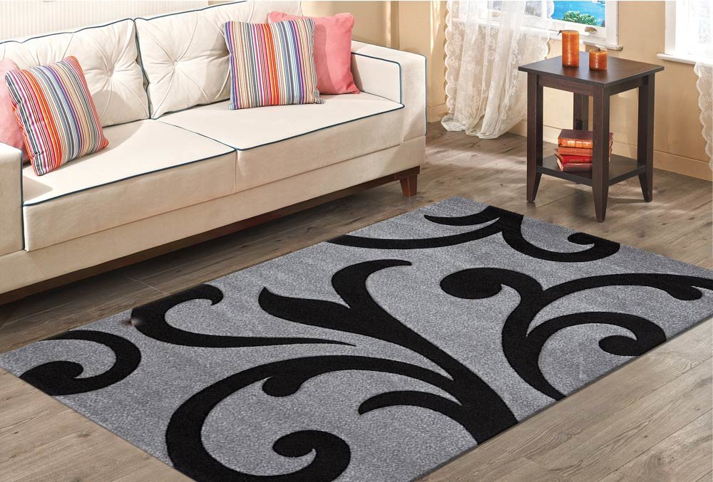 Teslimat: 1x Merinos Diamond Hand Curved Çiçek Desenli Halı | Gri | 761-995-Light-Grey