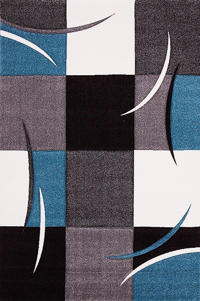 Teslimat: 1x Merinos Halı Diamond Hand Curved Kare Desenli | Turkuaz | 665-930-Turquoise