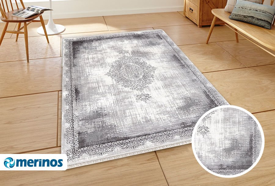 Teslimat: 1x Merinos Rodin Modern Halı | Eskitme Desenli | Gri | 19770-95-Grey