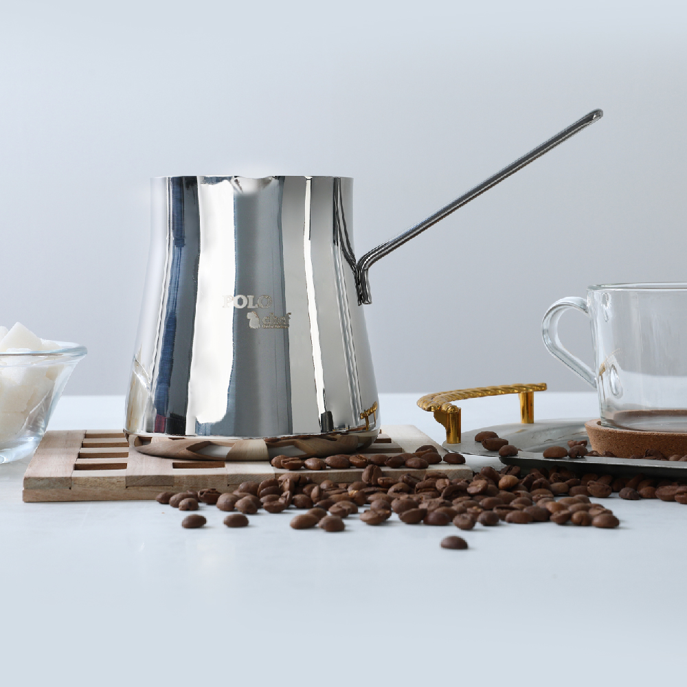 Misafirlerinize lezzetli Türk kahvesi ikramınızı Polo Shef Mocca Çelik Cezve & Sütlük 8 Kişilik 750 ml ile yapın. Özel tasarımı şıklığın yanında kullanım kolaylığını da beraberinde getiriyor.