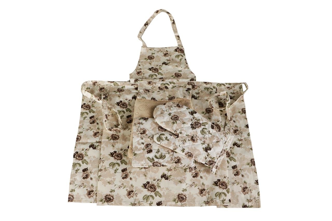 Teslimat: 1x Mutfak Önlük Seti Bej Flower 3 Adet
