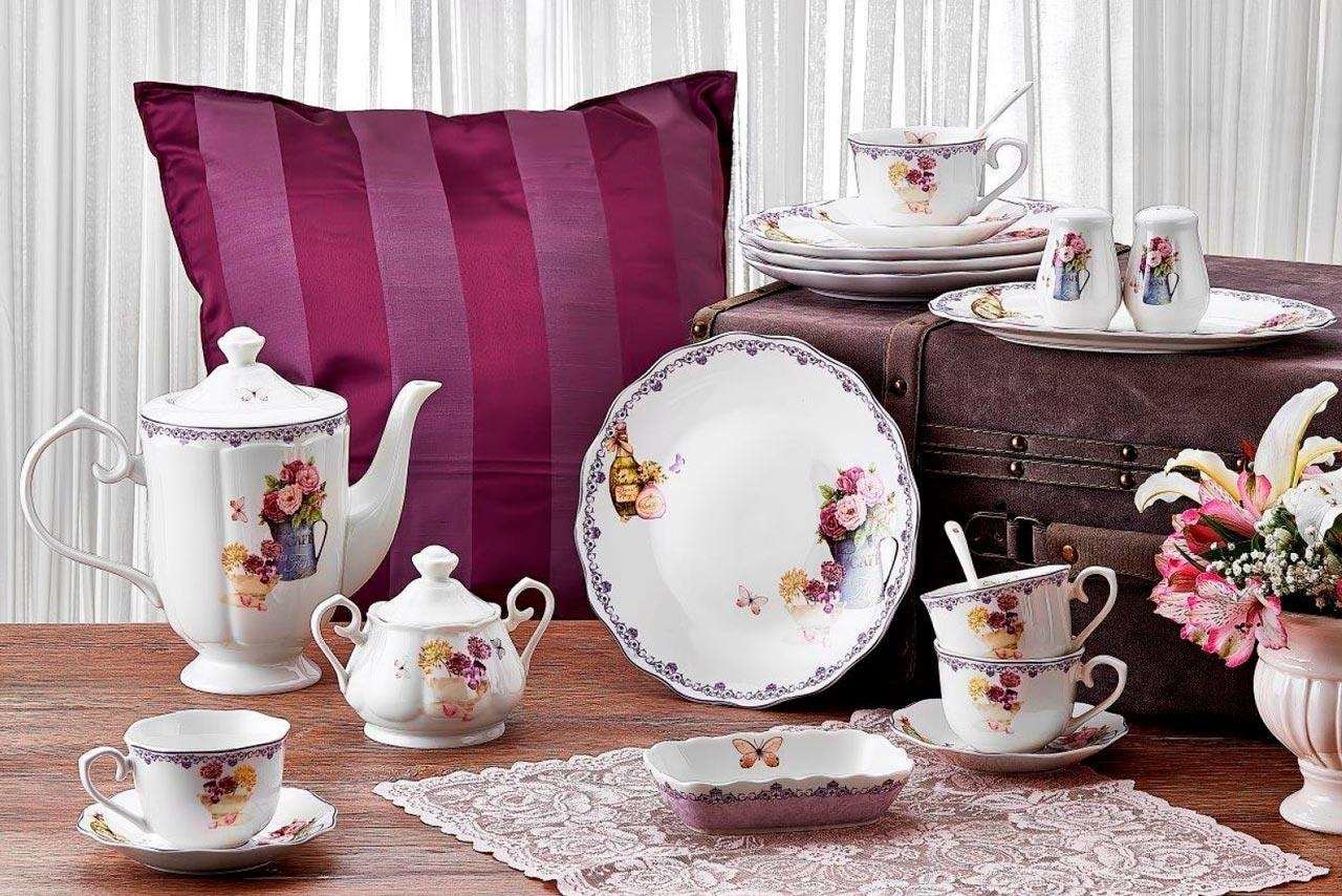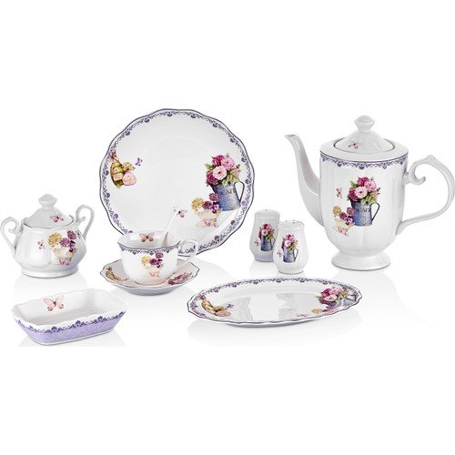 Teslimat : 1 x Neva Lila 36 Parça Çiçek Desenli Porselen Kahvaltı Takımı | Beyaz | 6 Kişilik