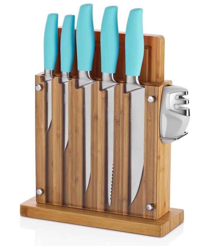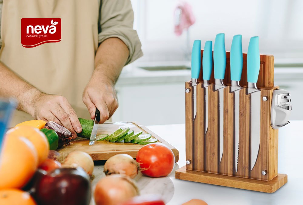 Teslimat: 1X Neva Sweet 5'li Bıçak Seti Kesme Tahtası ve Ahşap Standlı 8 Parça | Turkuaz | N2373