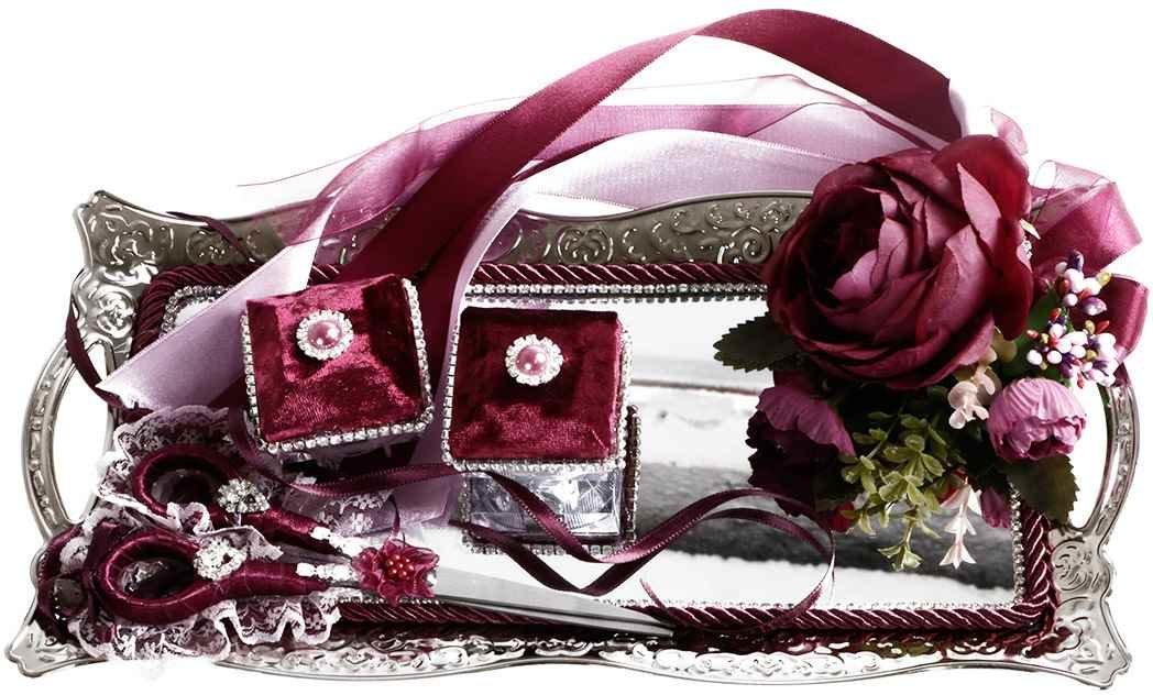 Teslimat: 1X Nişan Söz Tepsisi Çiçek ve Taş Süslü Mor | bedibuy