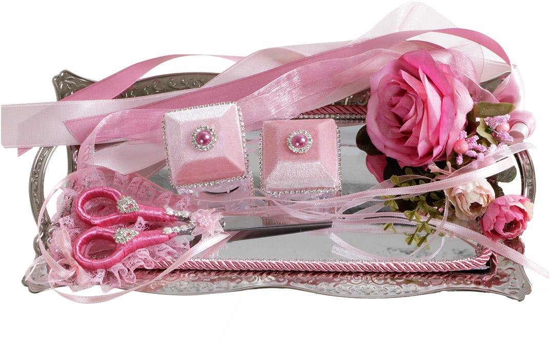 Teslimat: 1X Nişan Söz Tepsisi Çiçek ve Taş Süslü Pembe | NSN-0002