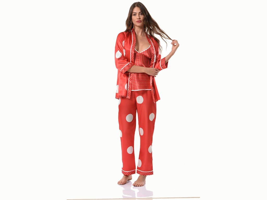 Ürün Adı: "Nokta Desenli Saten 3 Lü Pijama Takımı 8526 Kırmızı"
