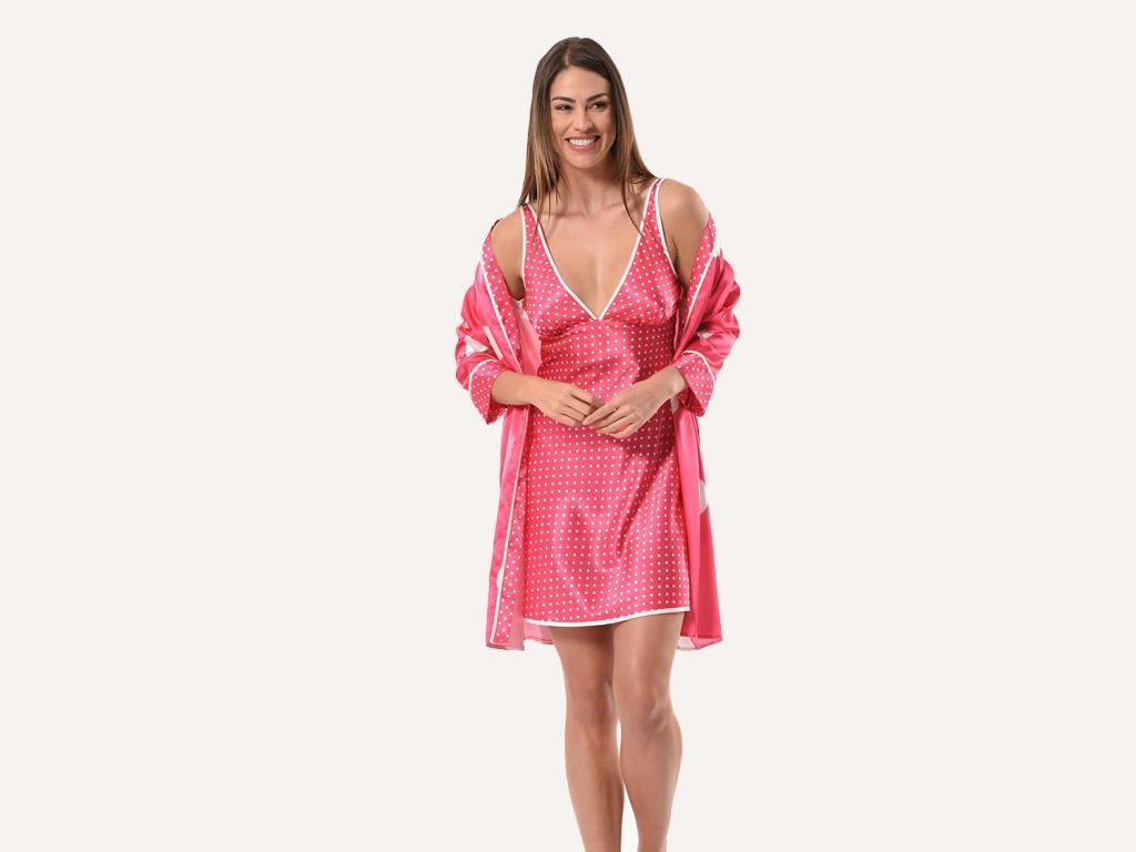 Ürün Adı: "Nokta Desenli Saten Gecelik Ve Sabahlık Takımı 2520 Nar Çiçeği"