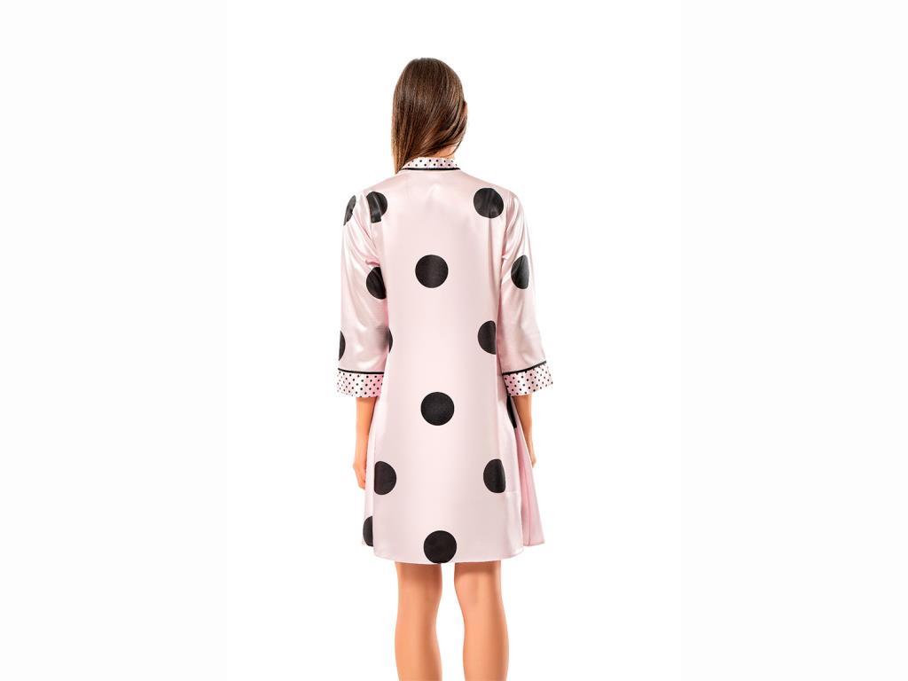 Nokta Desenli Saten Gecelik Ve Sabahlık Takımı 2571 Krem