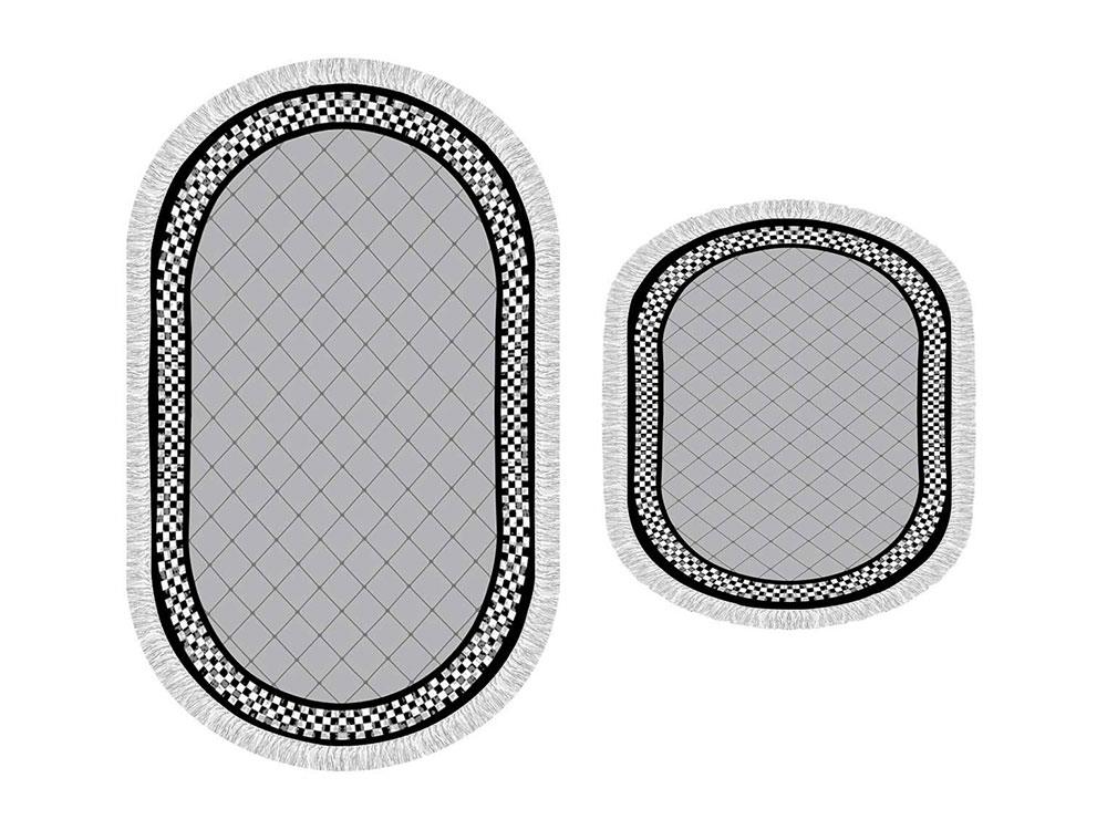 Ürün Adı: "Oval Saçaklı 2'li Banyo Paspas Takımı Dama Gri"