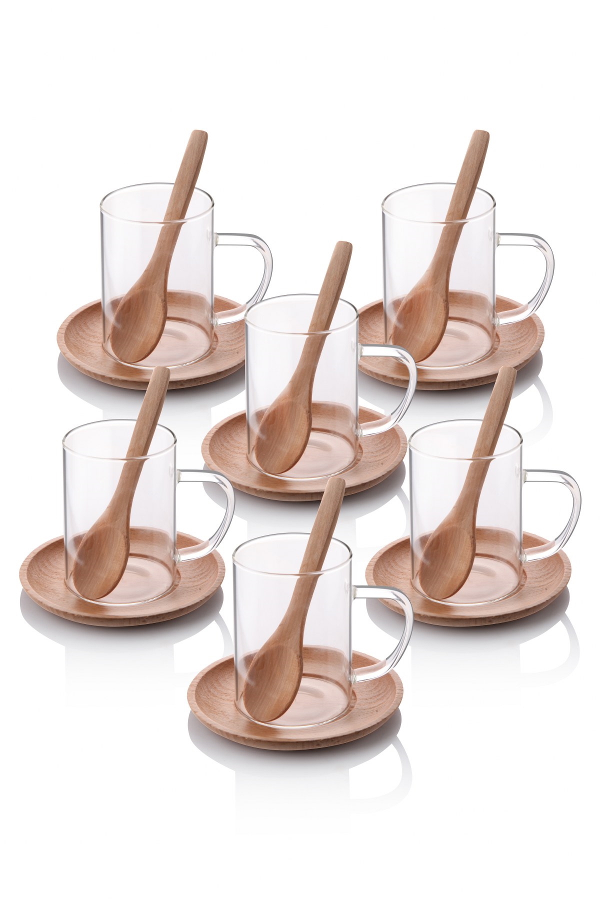 Teslimat: 1x Queen's Kitchen | Ahşap Tabaklı ve Kaşıklı Çay Seti 18 Parça
