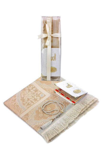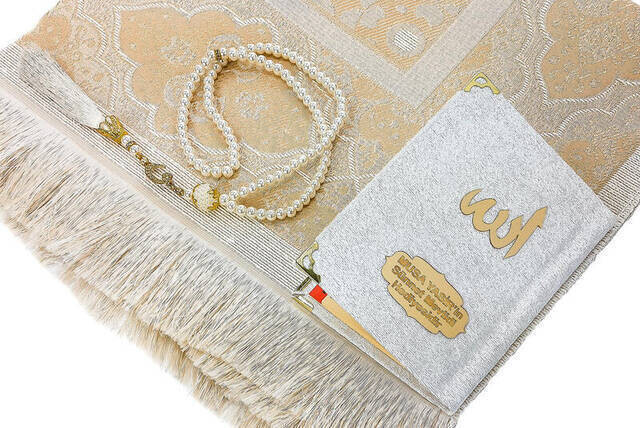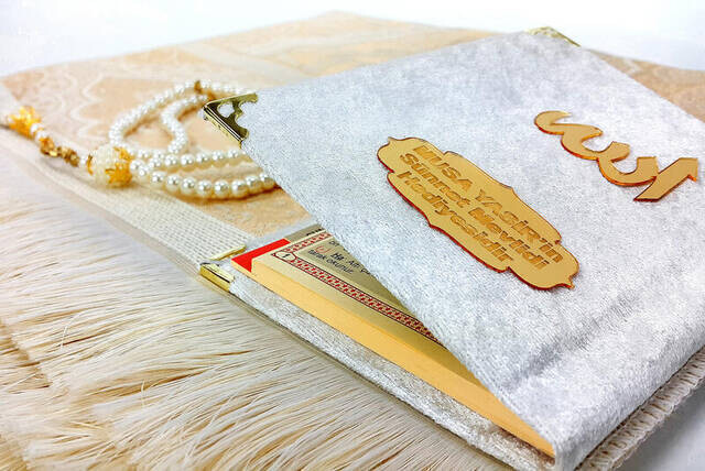 Ramazana Özel Set İsim Baskılı Kadife Kaplı Yasin Seccade - Tesbih - Kutulu