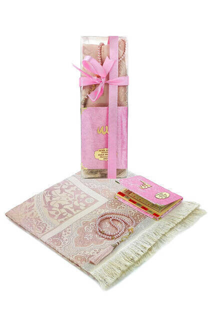 Ramazana Özel Set İsim Baskılı Kadife Kaplı Yasin Seccade - Tesbih - Kutulu