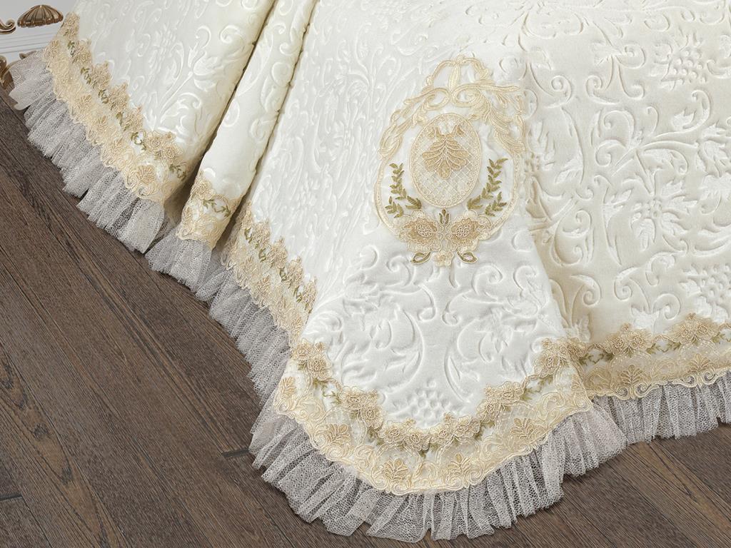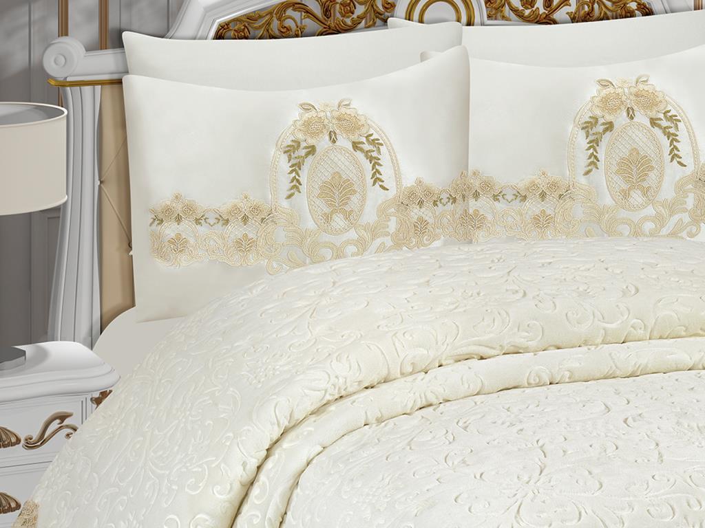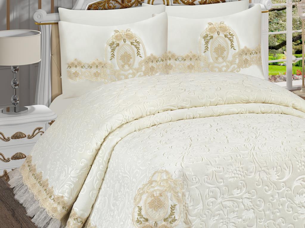 Ürün Adı: "Roma Fransız Güpürlü Battaniye Takımı Krem"