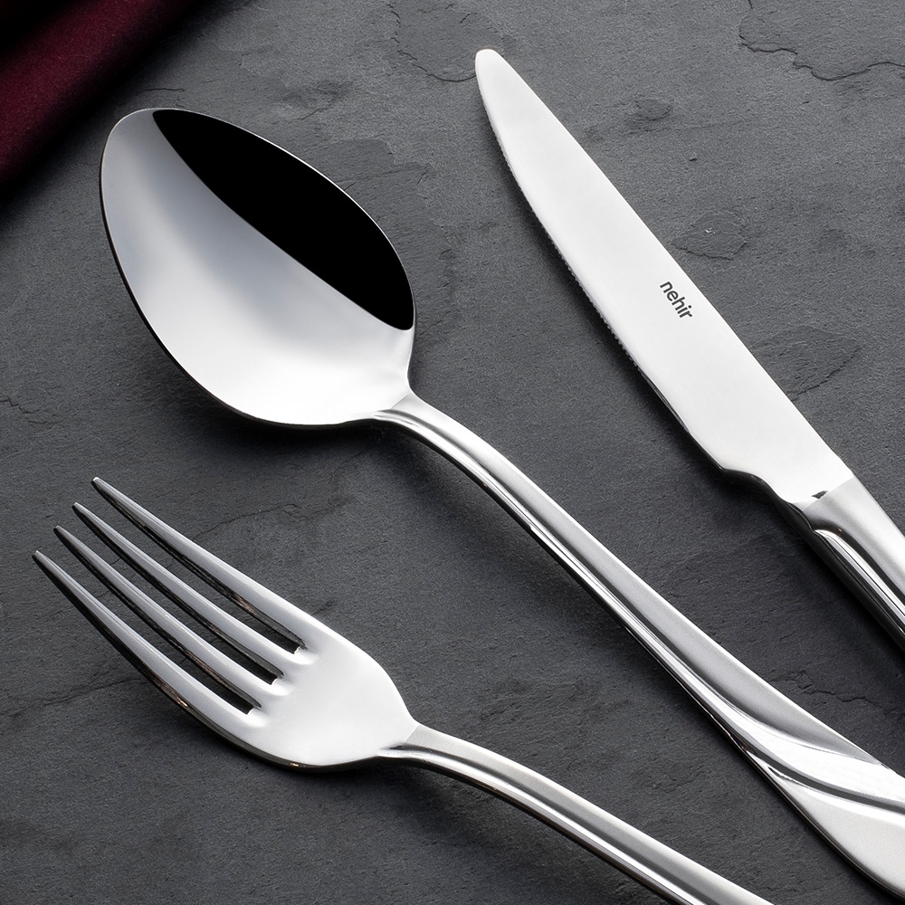 * Tüm Nehir çatal kaşık bıçak takımları 18/10 Cr-Ni paslanmaz çelik kullanılarak üretiliyor.