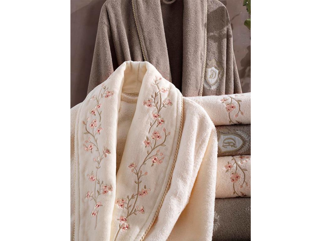 Ürün Adı: "Sarmaşık Pamuklu Bornoz Takımı Krem Bej"