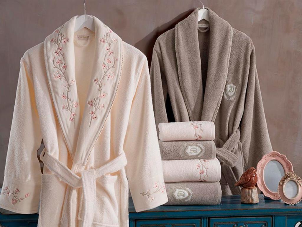 Buna dair başka bağlantılar "Sarmaşık Pamuklu Bornoz Takımı Krem Bej"