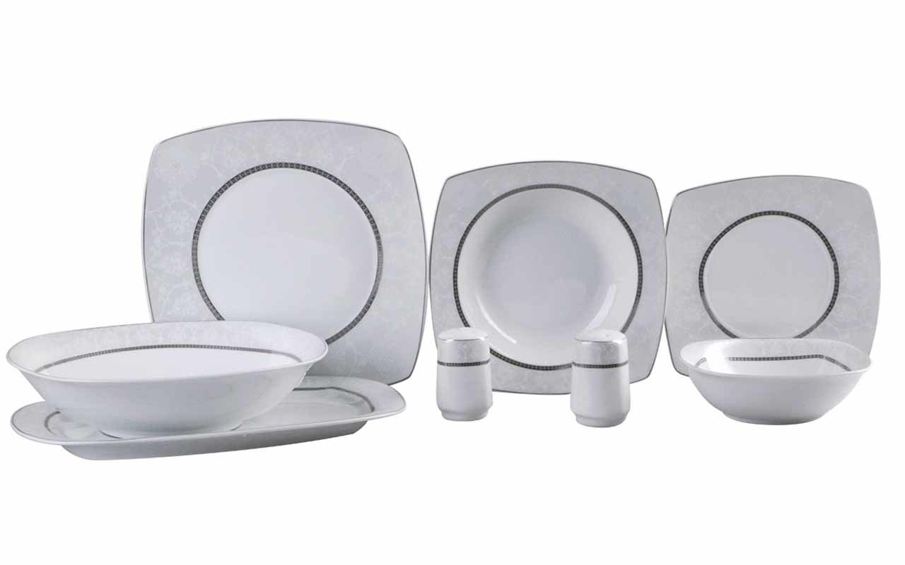 Teslimat : 1 x Schäfer 28 Parça Porselen Yemek Takımı Gümüş Kare | 6 Kişilik | 30986