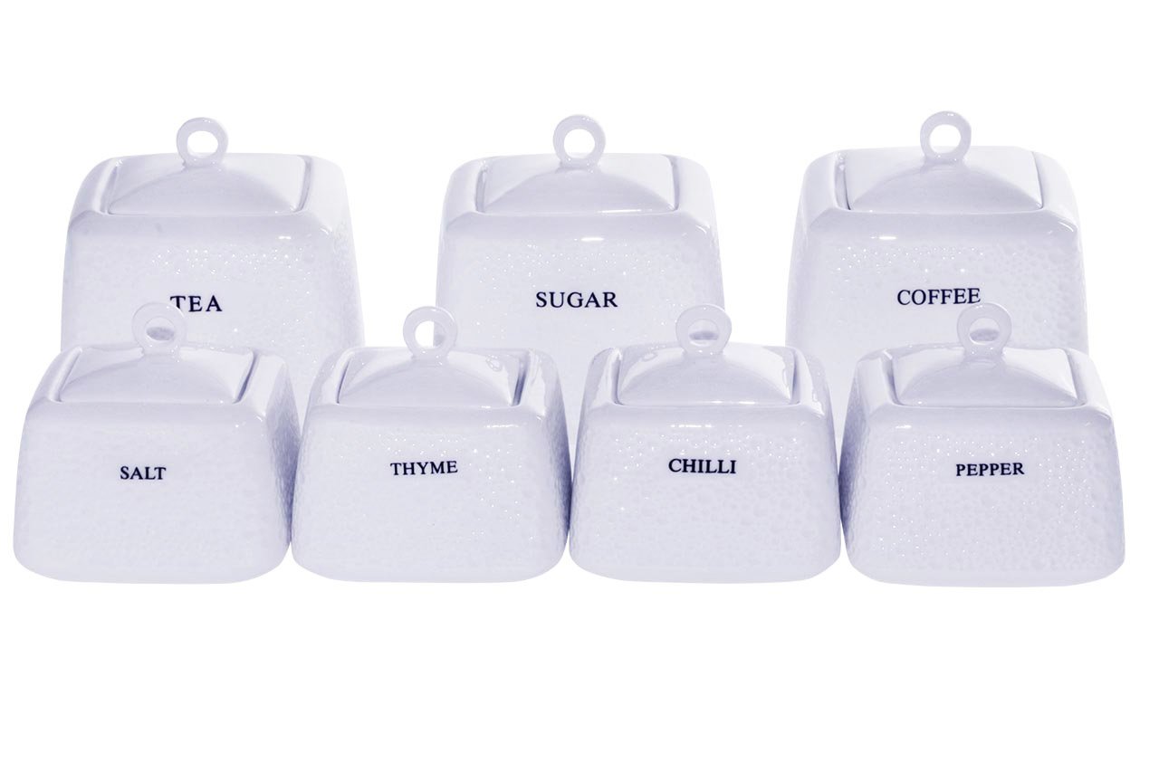 - 3 x kapakli büyük porselen kavonoz: kahve, cay, seker
