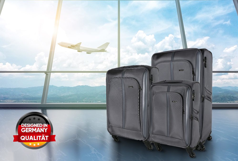 Teslimat ve Boyutlar: 1 x SHAIK 3'lü Somla Serisi Bavul Seti | 360° Dönen Tekerler | Şifreli Kilit | Gri | She003-grau