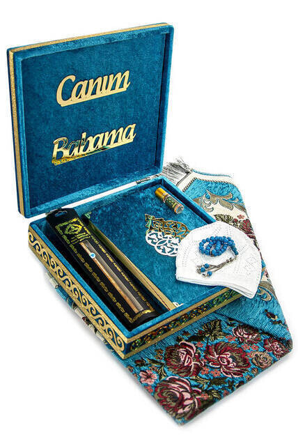 محتوى مجموعة الهدايا الإسلامية: مصحف مخمل مغطى (مقاس وسط 17x24 سم) صندوق مخملي خاص مغطى...قراءة المزيد