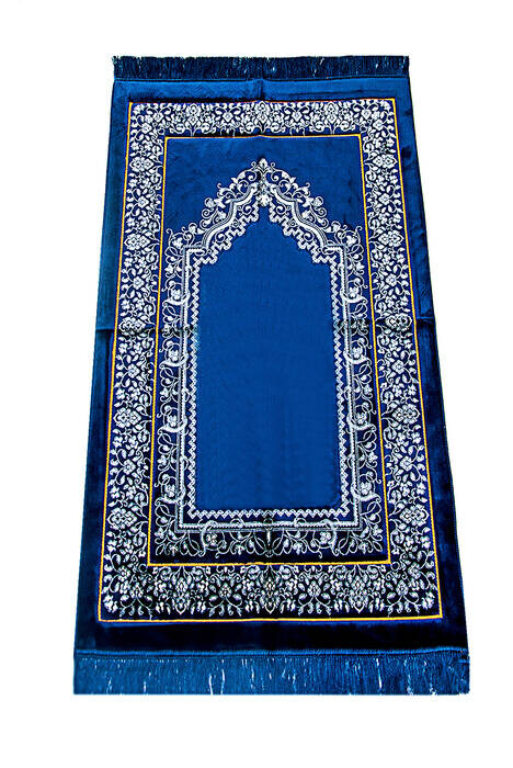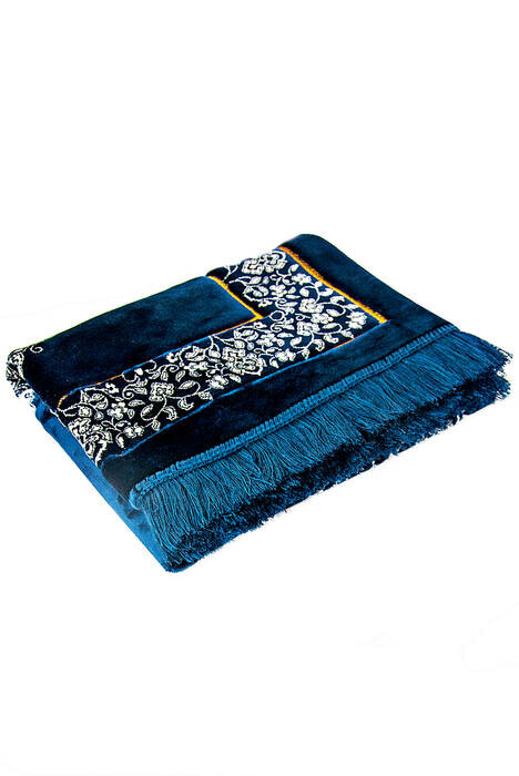 سجادة صلاة مخملية مزدوجة بلس - لون أزرق غامق 01