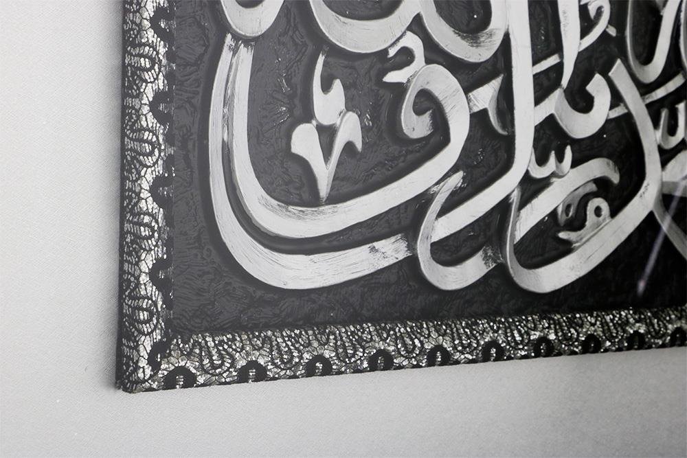دكونز تصوير ديني كبير مكتوب "كلمة التوحيد" مجسمة | أسود فضة | 115×64سم