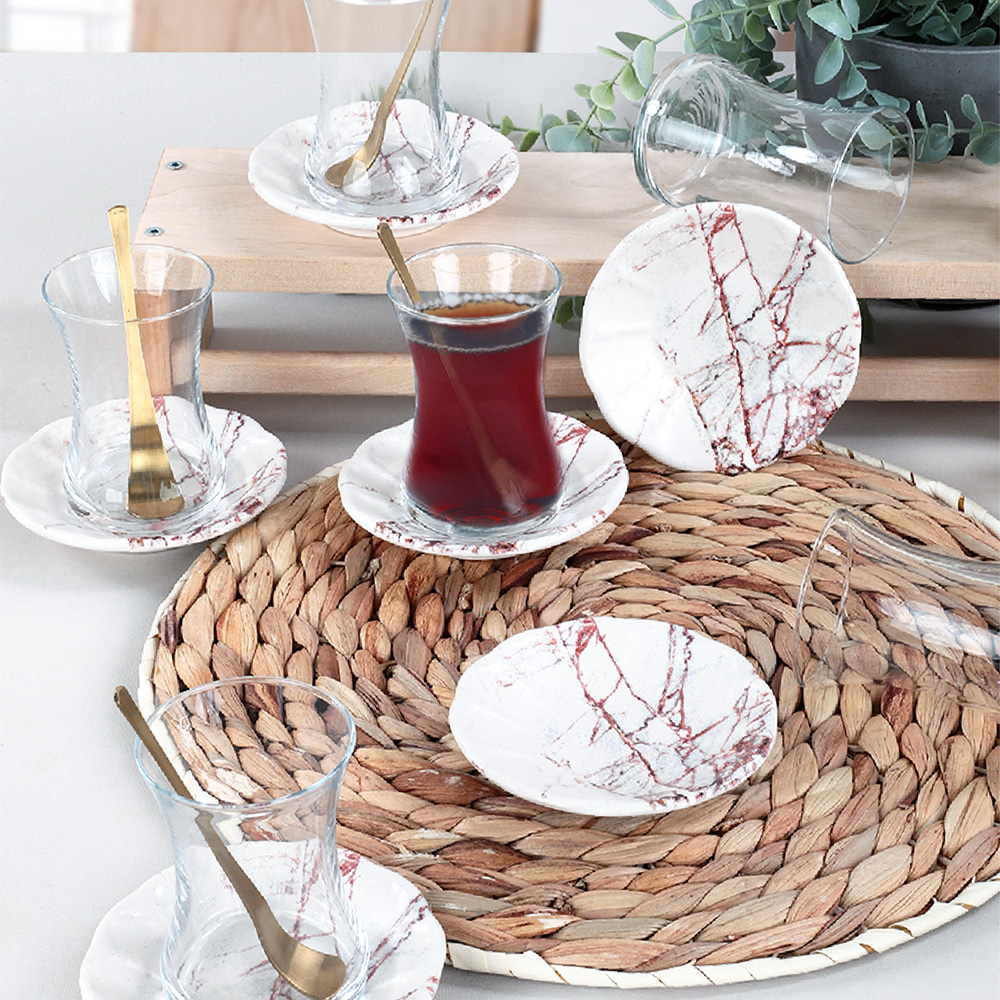:معلومات المنتج "طقم شاي زجاجي من الرخام البني 12 قطعة لـ 6 أشخاص - 17802 | كيراميكا"