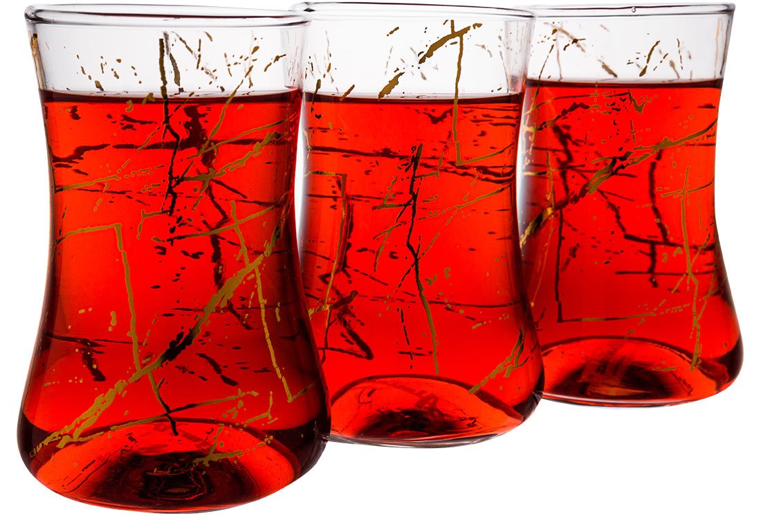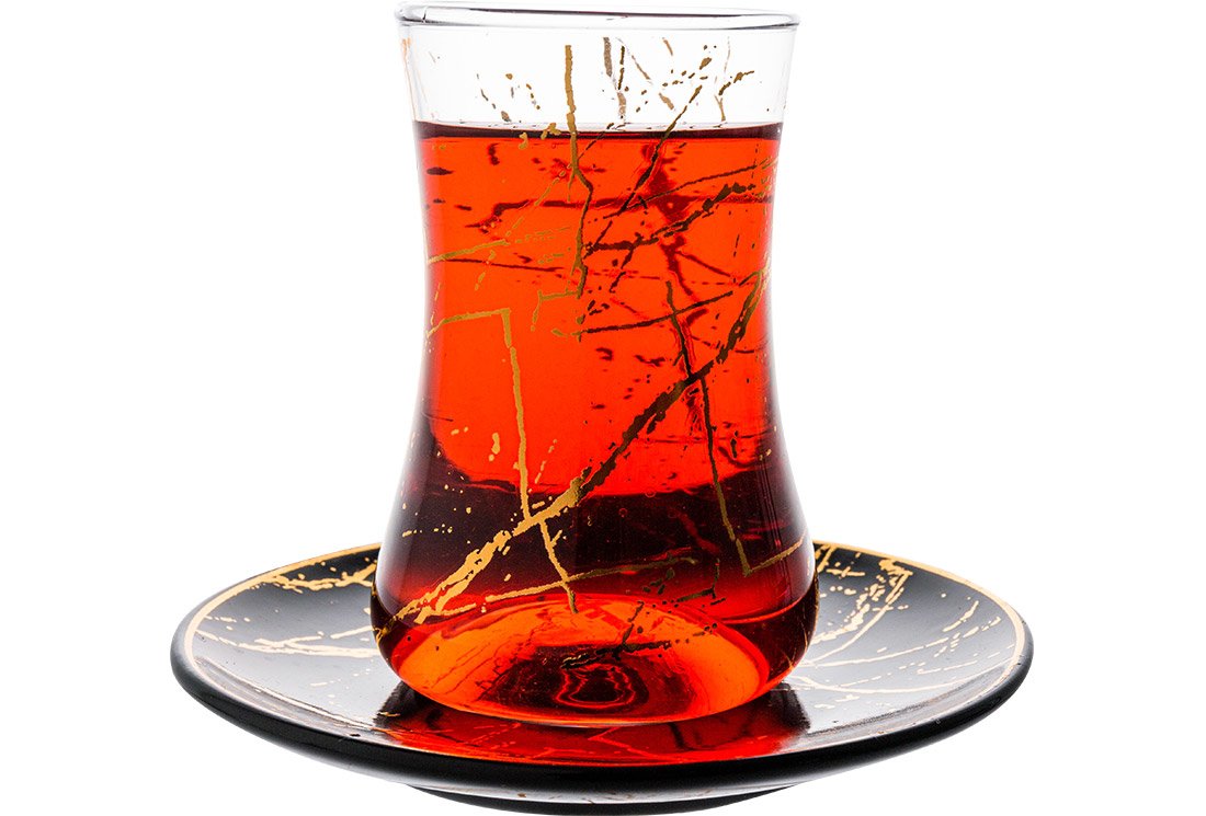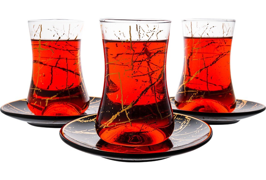 اسم المنتج: طقم 6 أكواب شاي ديكوناز | لوحة سوداء منقوشة لون ذهبي | 12 قطعة | AL-6520