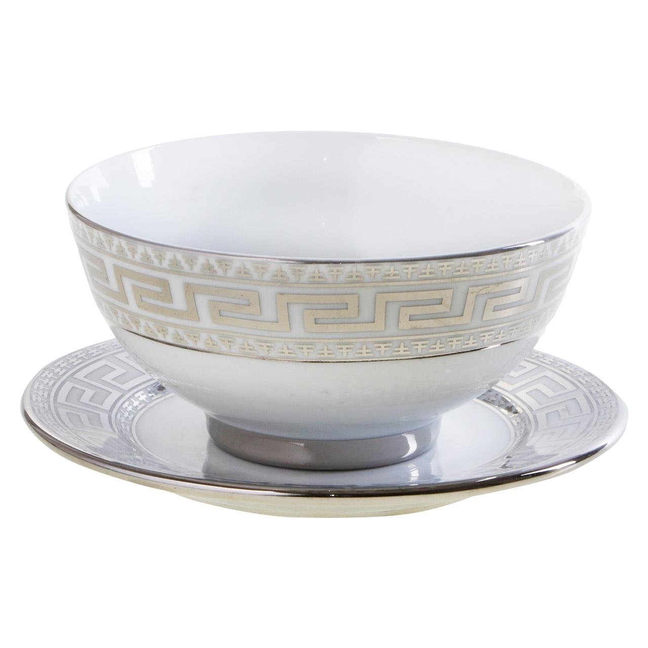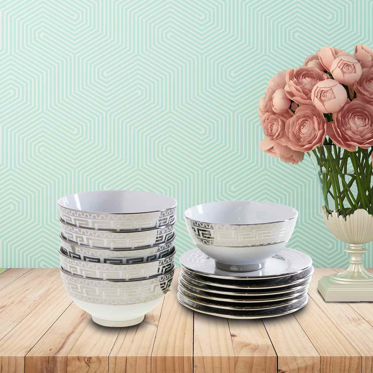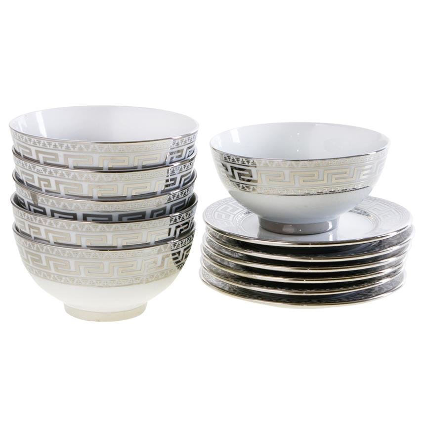 التسليم: 1 x طقم صحن بورسلين بورسلين مكون من 12 قطعة من بافاري عزر فضي | 6 أشخاص | DE-1130-S