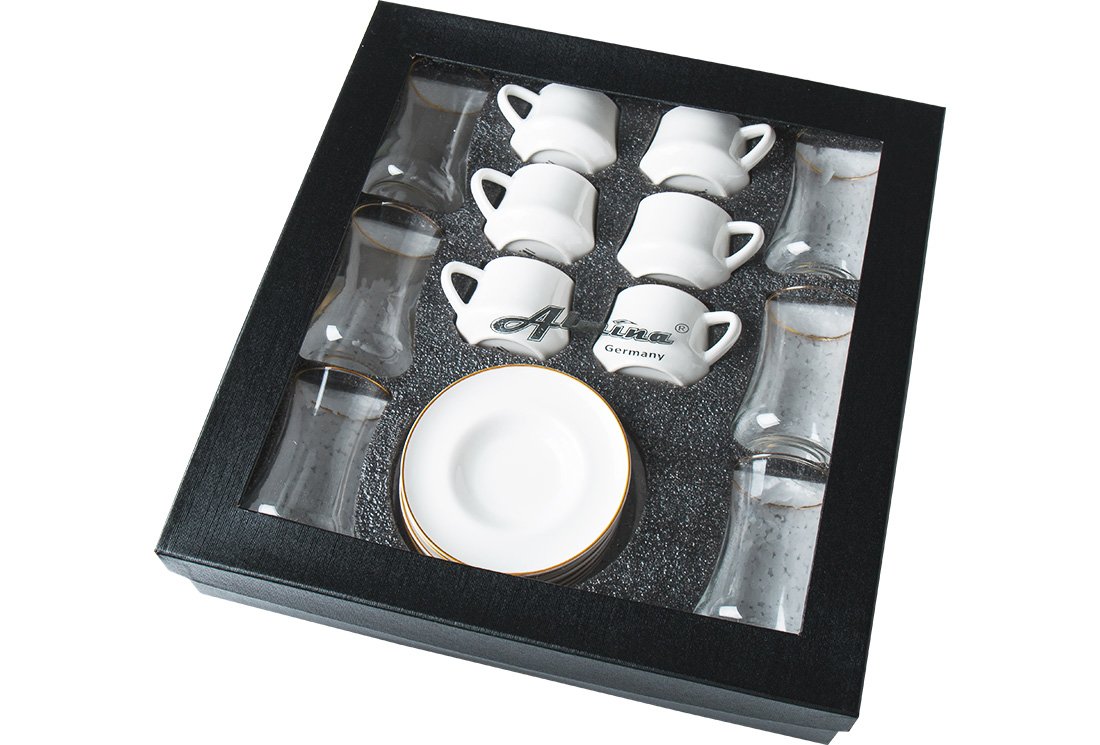 المنتج: طقم شاي وقهوة ألمينا | زجاج وكأس | ماتي وايت | 18 قطعة | سورة 8289
